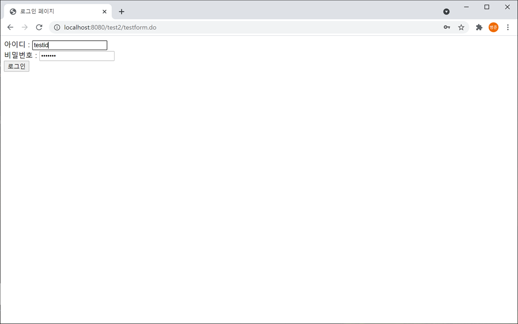 아이디에는 "testid"를 패스워드에는 "testpwd"를 입력하고 "로그인"버튼을 클릭합니다.